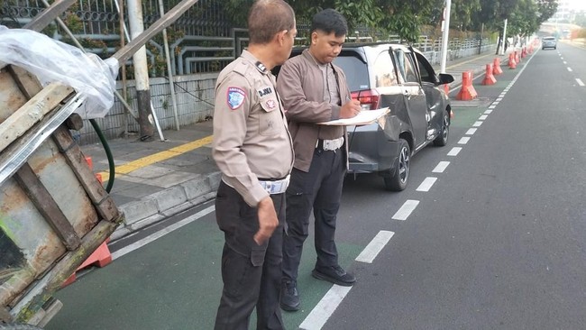 Berdasarkan foto yang diunggah TMC Polda Metro, bagian bodi kanan mobil yang terlibat kecelakaan terlihat penyok. Sementara kondisi motor yang terlibat kecelakaan itu juga mengalami kerusakan.