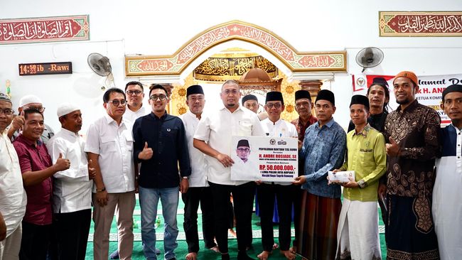 Wakil Ketua Komisi VI DPR RI Andre Rosiade menyerahkan bantuan sebesar Rp 50 juta di Masjid Raya Taqrib Rawang, Kecamatan Padang Selatan, Kota Padang. Selain menyerahkan bantuan, Andre juga menjemput aspirasi masyarakat.