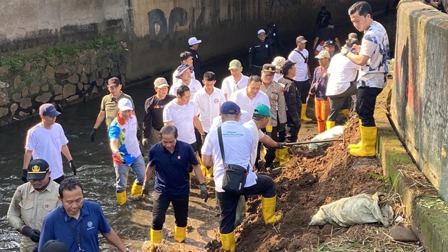 Menteri Lingkungan Hidup (LH) Hanif Faisol Nurofiq turun langsung membersihkan Sungai Cipinang, Depok, Jawa Barat (Jabar). Sebanyak 3 ton sampah disebut ditemukan dalam pengerukan ini.