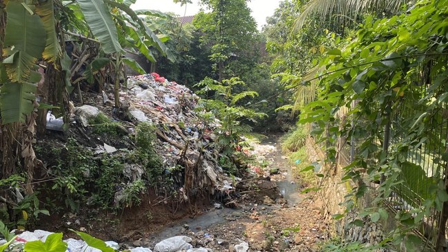 Pantauan detikcom di Harjamukti, Depok, Minggu (12/10/2025) terlihat sampah itu menumpuk di bantaran sungai. Tampak ada juga TPA liar di dekat lokasi aliran Sungai Cipinang.