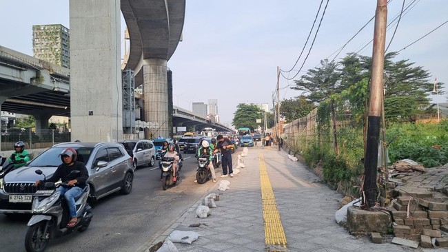 Pantauan detikcom di lokasi, Minggu (12/10/2025), proyek trotoar dan bekas galian di sekitar Stasiun MRT Fatmawati sudah terlihat hampir rampung. Tampak sejumlah guiding block di trotoar itu masih tertutup plastik.