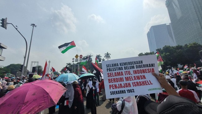 Meski gencatan senjata telah dimulai, aksi damai membela Palestina masih terus dilakukan di Indonesia. Salah satunya yang digelar di Patung Kuda, Jakarta Pusat. Jalan Medan Merdeka Barat atau Selatan ditutup sementara.