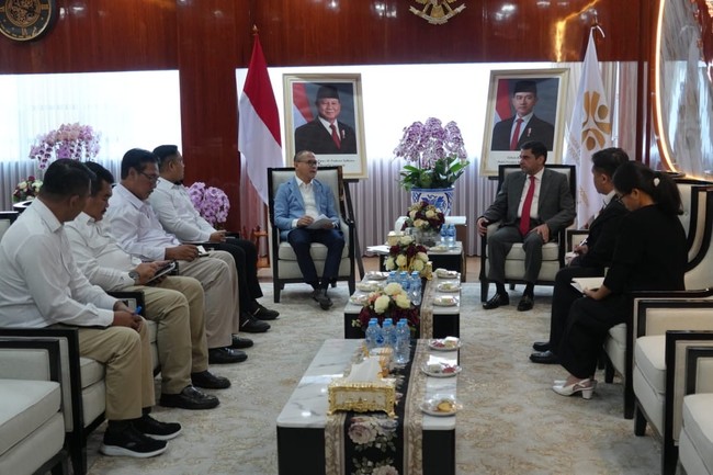 Menteri Pelindungan Pekerja Migran Indonesia (P2MI), Mukhtarudin didampingi Wakil Menteri P2MI, Dzulfikar Ahmad Tawalla menerima kunjungan Duta Besar Yordania untuk Indonesia, Sudqi Al Omoush, di Kantor KemenP2MI, Jakarta, hari ini. Pertemuan tersebut membahas peluang kerja sama penempatan pekerja migran Indonesia ke Yordania.