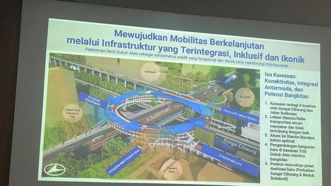 "Itu kurang lebih lebarnya sekitar 12 (meter). Kalau Anda tahu dari PIM (Pondok Indah Mal) 2, PIM 1, kalau itu kan paling berapa ya lebarnya, tapi kita akan coba bangun 12 (meter), 7 (meter)-nya untuk traffic public, kemudian 5 (meter)-nya untuk bisnis. Kita bangun yang akan menghubungkan 4 mode, ada KCI, ada LRT Jabodebek, ada MRT, kemudian ada kereta bandara. Sementara LRT Jakarta belum sampai ke situ," ujarnya.