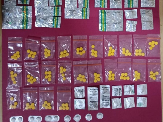 Saat meringkus ED, Imron mengatakan ditemukan juga barang bukti berupa 98 butir Tramadol, 119 butir Hexymer, 12 butir Alprazolam, 10 butir Riklona serta uang tunai senilai Rp 13 ribu. Petugas juga menyita sebuah tas pinggang warna hitam yang digunakan pelaku untuk menyimpan obat-obatan tersebut.