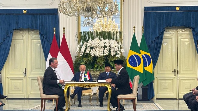 Presiden Prabowo Subianto dan Presiden Brasil Luiz Inácio Lula da Silva menggelar pertemuan empat mata hingga bilateral di Istana Kepresidenan, Jakarta. Pertemuan bilateral pemerintah RI dan Brasil menghasilkan delapan MoU/nota kesepahaman.