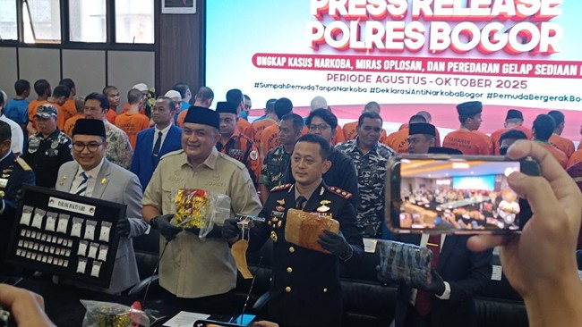 "Dari keseluruhan kasus yang dapat diungkap tersebut, telah diamankan 155 tersangka yang terdiri dari 153 laki-laki dan dua perempuan," kata Kapolres Bogor AKBP Wikha Ardilestanto dalam konferensi pers di Mapolres Bogor, Selasa (28/10/2025).
