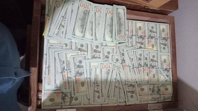 "Barang bukti yang diamankan berupa 6.000 lembar uang rupiah pecahan Rp 100 ribu, 550 lembar uang dolar Amerika pecahan USD 100, 150 lembar uang dolar Amerika pecahan USD 50, 4 buah peti kayu, dan 10 buah kardus," jelas Dian.