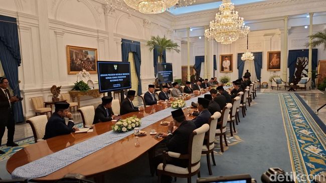 Pantauan detikcom di Istana Merdeka, Jakarta, Jumat (7/11/2025), Prabowo duduk di tengah saat memberikan arahan. Jajaran Komisi Reformasi Polri berada duduk di hadapan Prabowo.