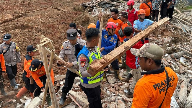 Lebih dari 20 orang dilaporkan masih hilang akibat longsor di Dusun Cibuyut, Desa Cibeunying, Kabupaten Cilacap, Jawa Tengah. Polisi mengerahkan 155 personel dan 4 anjing pelacak untuk mencari korban.