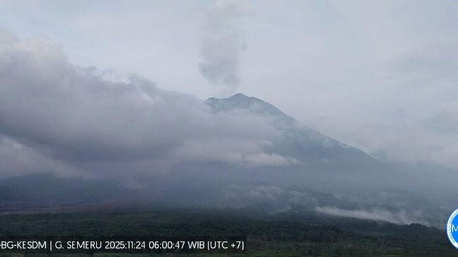 "Pengamatan secara visual gunung api terlihat jelas hingga tertutup Kabut 0-II. Teramati asap kawah utama berwarna putih dengan intensitas sedang, membubung sekitar 500-1000 meter dari puncak," kata Petugas Pos Pengamatan Gunung Semeru Mukdas Sofian dilansir Antara, Senin (24/11/2025).