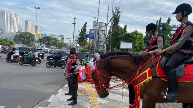 Dia mengatakan dua polisi berkuda akan mengatur lalin di jam sibuk pada hari kerja. Selain mengatur lalin, polisi membantu menyeberangkan warga di lokasi.