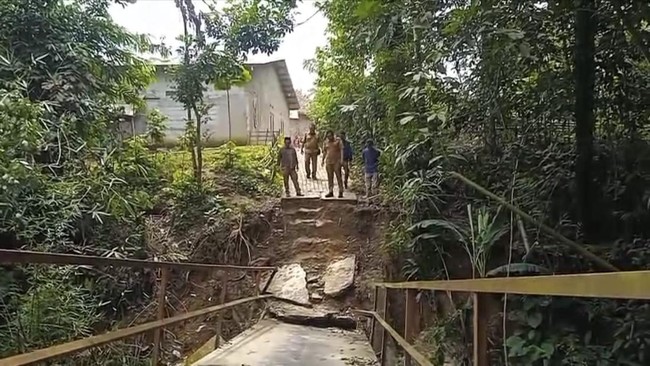 "Jembatan longsor pada Sabtu kemarin saat hujan deras, luapan air merusak material jembatan yang memang sudah bermasalah sejak 2023," katanya.