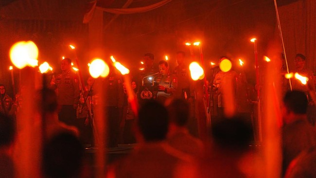 "Malam ini bukanlah malam yang tidak ada artinya. Malam ini adalah malam di mana kita semua menyatukan tekad, menyatukan semangat, melupakan perbedaan, menyatukan barisan untuk menjaga institusi tercinta, menjaga semangat Tribrata dan Catur Prasetya, menjaga semangat para satria Bhayangkara untuk terus memberikan pelayanan terbaik bagi institusi, keamanan negara ini," kata Jenderal Sigit dalam momen itu.