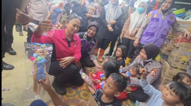 Ketum Bhayangkari, Juliati Sigit Prabowo, mendampingi Kapolri Jenderal Listyo Sigit Prabowo mengunjungi posko pengungsian di Aceh Tamiang hari ini. Di posko pengungsian itu, Juliati mendistribusikan bantuan dan mainan kepada anak-anak.