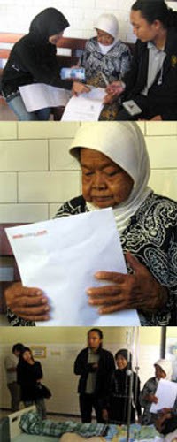 Sumbangan dermawan untuk mengurangi penderitaan yang dialami Mbok Darmi dan Giman diserahkan detikers Surabaya di Rumah Sakit (RS) Haji Sukolilo, Surabaya, Minggu (6/7/2008).