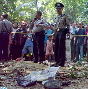 Sementara lokasi kedua di kebun yang ada di seberang lokasi pertama. Di tempat itu ditemukan potongan kepala dan badan. Kedua kebun yang memiliki luas masing-masing 1000 meter persegi itu ditanami pohon bambu, rambutan dan nangka.