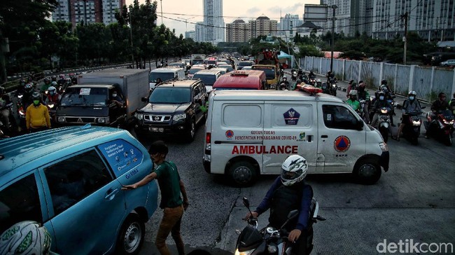 "Guys ambulans tidak menjadi prioritas, Guys. Kita ditahan, kita ditahan. Masuk saja. Pak, emergency, Pak, emergency, Pak, emergency, emergency, emergency. Status merah, Pak, nggak dikasih jalan," ucap seseorang yang merekam video tersebut seperti dilihat detikcom, Jumat (25/6/2021).