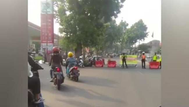 "Jalan utama di sekat, motong jalan dikit. Tapi masih bisa lewat," lanjutan tulisan di video viral tersebut.