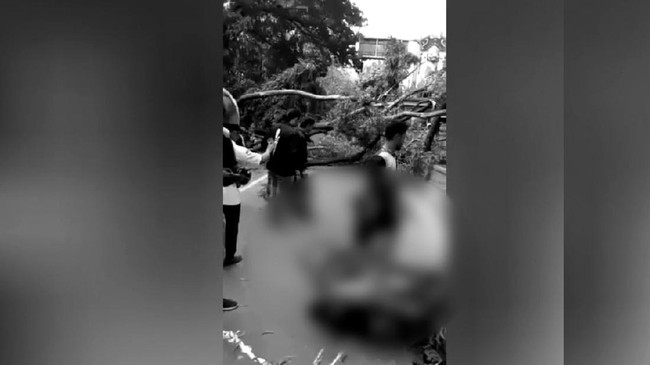 Jakarta - Sebuah pohon tumbang dan menimpa pengemudi ojek online yang sedang melintas di Jalan Arteri Jakarta-Bandung, Purwakarta. Pengemudi ojol tersebut mengalami luka parah di bagian kepala korban langsung dilarikan ke rumah sakit terdekat.