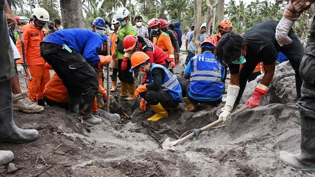 Petugas gabungan berhasil mengevakuasi 3 jenazah korban erupsi Gunung Semeru. Korban ditemukan di Kampung Renteng, Desa Sumberwuluh, Lumajang, Jatim.