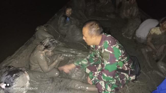 Jakarta - TNI AL menyelamatkan puluhan pekerja migran Indonesia (PMI) ilegal yang hendak pergi ke Malaysia. Mereka dalam kondisi lemas usai melewati genangan lumpur saat menuju ke kapal yang tengah berada di wilayah perairan Tanjung Tiram, Batu Bara, Sumatera Utara (Sumut).