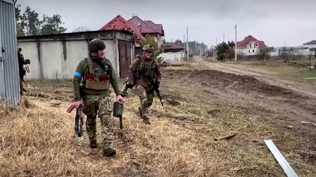 Jakarta - Pasukan Ukraina berpatroli di desa-desa di utara Kiev yang sebelumnya direbut tentara Rusia awal pekan ini. Mereka menggeledah ladang dan rumah-rumah untuk mencari senjata, amunisi hingga peralatan militer lainnya yang ditinggalkan pasukan Rusia.