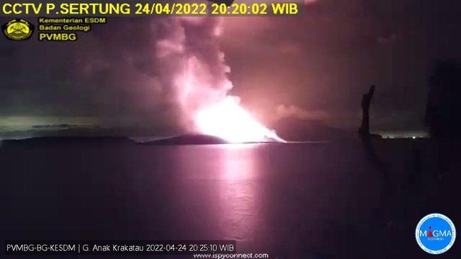 Jakarta - Gunung Anak Krakatau kembali erupsi, Minggu (24/4) pukul 20:20 WIB. Tinggi kolom abu tercatat kurang lebih 3.000 meter di atas puncak.