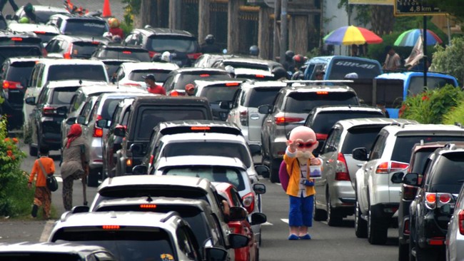 Jakarta - Kemacetan terjadi di Simpang Gadog, Kab. Bogor, Jawa Barat, Senin (16/5). Polisi menerapkan sistem one way dari arah Jakarta menuju kawasan wisata Puncak.