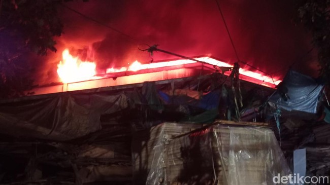 Lebih dari 20 jam api masih berkobar di lokasi kebakaran. Para personel damkar pun bergantian memadamkan api di lokasi.