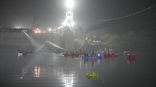 TV lokal Zee News melaporkan 400 orang yang berada di jembatan itu jatuh ke Sungai Machchu. Jembatan bersejarah itu dibangun pada masa pemerintahan Inggris di abad ke-19.