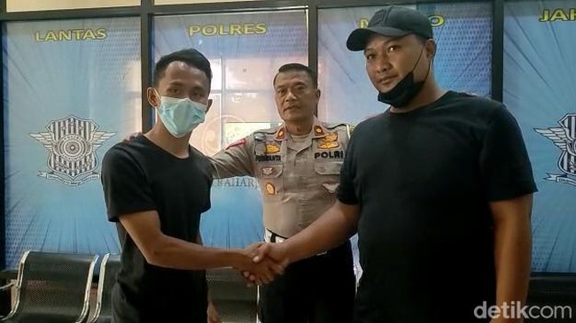 Jakarta - Pengemudi taksi online berinisial ML yang tabrak lari pesepeda di Jalan Harmoni dimediasi dengan korban berinisial YS pada Minggu (6/11). Keduanya mediasi didampingi Kepala Satuan Lalu Lintas Polres Metro Jakarta Pusat, Kompol Purwanta bersepakat untuk berdamai.