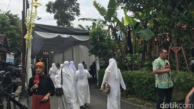 Tamu yang masuk dibatasi, hanya keluarga dekat dan kerabat. Rangkaian acara semaan dan pengajian dimulai pukul 12:00 WIB