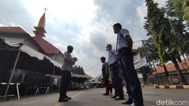 Untuk menyambut jemaat, sudah disiapkan tenda dengan kursi yang disusun rapi untuk jemaat. Selain itu, polisi juga sudah mendirikan pos pengamanan untuk menjaga rangkaian ibadah natal.