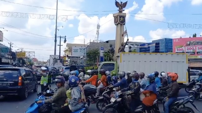 Sukoharjo - Kondisi di Simpang Tiga Tugu Kartasura, Kabupaten Sukoharjo, padat sejak pukul 06.30 WIB, Sabtu (13/4/2024) atau H+3 arus balik lebaran 2024. Kepadatan terjadi baik dari arah Yogyakarta, Semarang, maupun Kota Solo.