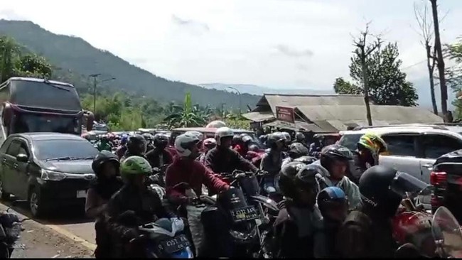 Kepadatan kendaraan arus balik terjadi di jalur Gentong Tasikmalaya. Kendaraan menuju Bandung mengular hingga 15 kilometer.