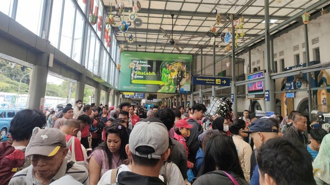 Sementara di hari terakhir cuti Lebaran ini, antrean pemudik masih terlihat di area keberangkatan. Beberapa penumpang memilih mudik pada hari ini karena baru mendapatkan tiket pada arus balik.