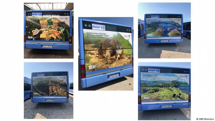 Mulai September 2018, selama dua bulan, sejumlah poster objek wisata Indonesia terpampang di beberapa bus di Kota Mnchen, Jerman. Lima bus yang terpampang poster pariwisata di Indonesia ini beroperasi dari Bandara Mnchen ke beberapa tujuan di kota Mnchen.
