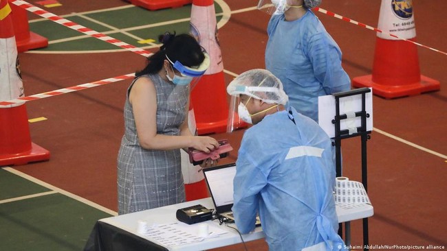 Menurut Kementerian Kesehatan, sekitar 84% dari 5,45 juta penduduk Singapura telah divaksinasi, termasuk sekitar 98% dari 153.000 birokrat di negara kota itu.