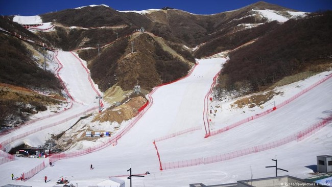 Lereng gunung Yanqing dan Zhangjiakou nan tandus yang biasanya digunakan untuk ski, untuk pertama kalinya akan menggunakan salju buatan secara keseluruhan.