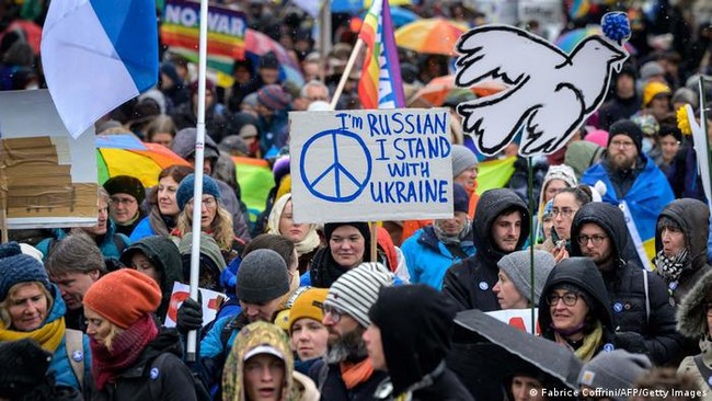 Di satu sisi, ada orang-orang seperti Natascha Mayer, yang mengutuk invasi Rusia dan berbagi rumah dengan pengungsi. Di sisi lain, ada minoritas keras yang menyatakan dukungan mereka untuk pemerintah Rusia dan mengibarkan bendera Rusia yang besar.