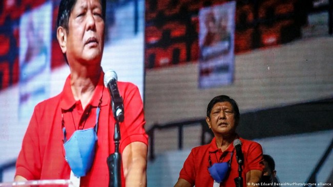 Hasil perhitungan cepat Pemilihan Presiden Filipina hingga Rabu (11/05) menunjukkan kemenangan sementara bagi Ferdinand "Bongbong" Marcos Jr., putra mantan diktator Ferdinand Marcos. Dikutip dari kantor berita AFP, dengan penghitungan awal yang hampir selesai, Bongbong Marcos memperoleh lebih dari 56% suara atau lebih dari dua kali lipat jumlah penghitungan yang didapat oleh saingan terkuatnya, Leni Robredo (independen).