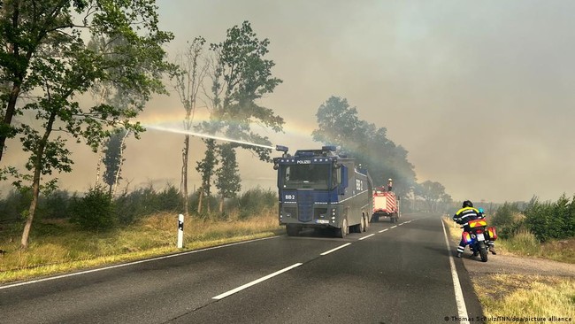 Sejak Jumat (17/06), sekitar 20 desa telah memerintahkan warganya untuk mengungsi, akibat kobaran api yang mulai mendekati rumah mereka. Sebelumnya, juru bicara pemadam kebakaran mengatakan area kebakaran telah menyebar ke "100 hingga 110 hektar," sekitar 70 kilometer dari Berlin. Helikopter militer pun dikerahkan untuk membantu operasi pemadaman.