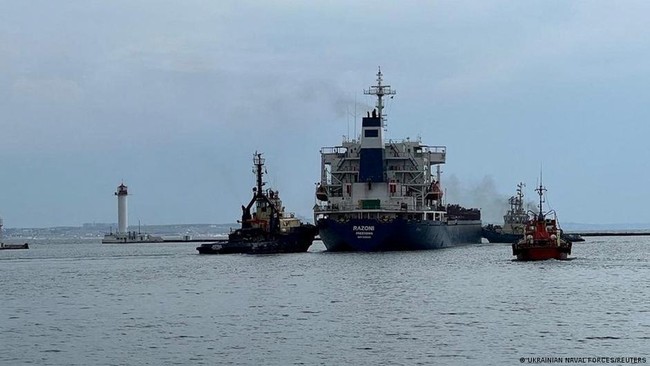 Penghentian pengiriman gandum selama lima bulan dari Ukraina -- salah satu pengekspor biji-bijian terbesar dunia -- telah berkontribusi pada melonjaknya harga pangan, yang sangat memukul negara-negara termiskin di dunia. Kyiv mengatakan keberangkatan kapal kargo Razoni akan membawa "kelegaan bagi dunia".