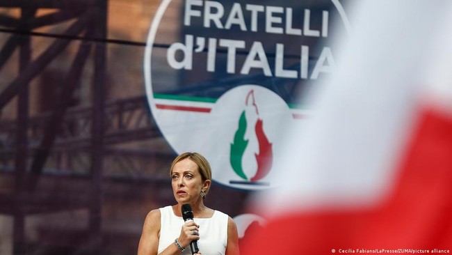 Dalam pemilihan 2018, partai sayap kanan Brothers of Italy hanya memenangkan 4% suara. Empat tahun kemudian, mereka memimpin jajak pendapat dan sekarang terlihat menang lebih dari 23% dan pemimpin mereka Giorgia Meloni diperkirakan menjadi perdana menteri perempuan pertama Italia pada September mendatang, setelah Mario Draghi mundur dan mengumumkan pemilu baru.