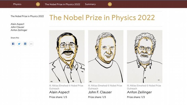 Alain Aspect, John F. Clauser dan Anton Zeilinger memenangkan Hadiah Nobel Fisika tahun 2022 untuk karya mereka di bidang mekanika kuantum, demikian Institut Karolinska Swedia mengumumkan pada hari Selasa (04/10).