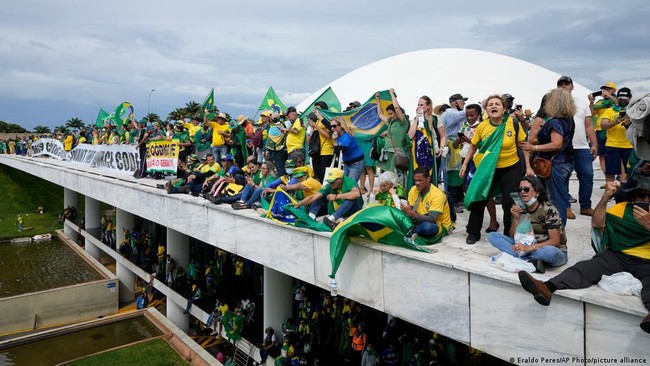 Bolsonaro, yang meninggalkan Brasil menuju negara bagian Florida di Amerika Serikat pada hari kedua hingga terakhir masa jabatannya, telah menolak tuduhan bahwa ia telah memanas-manasi para pengunjuk rasa. Dia mengatakan demonstrasi damai itu demokratis, tetapi serangan terhadap gedung-gedung pemerintah telah "melewati batas."