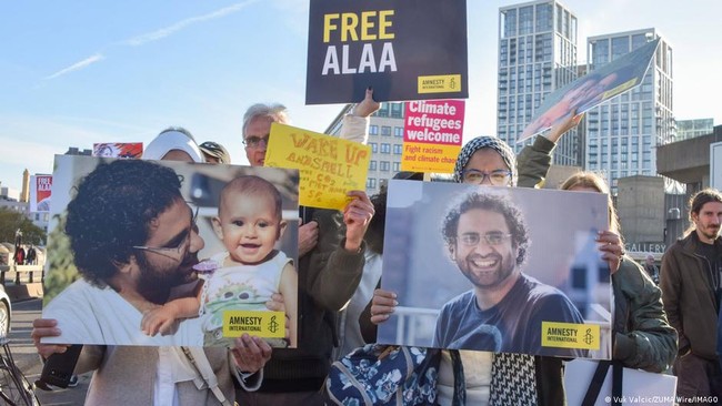 "Keluarga kami disarankan diam dan membiarkan tekanan politik membesar menyusul kritik internasional selama KTT Iklim PBB di Sham el Sheikh," akhir tahun lalu, kata saudara perempuannya, Sanaa Seif, kepada DW.