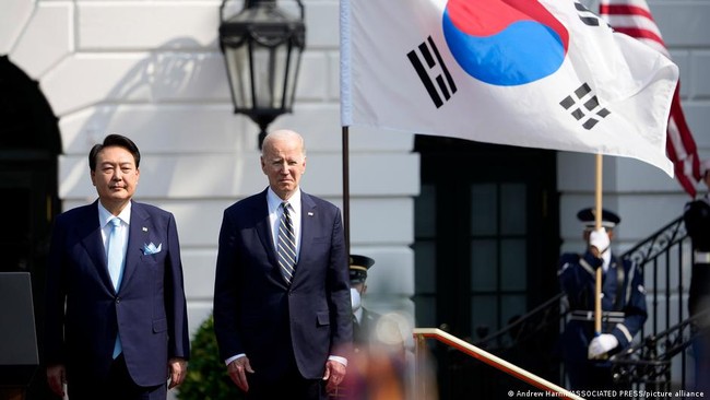 Biden menyambut kunjungan Yoon ke Washington dengan upacara megah di Gedung Putih pada hari Rabu (26/04).