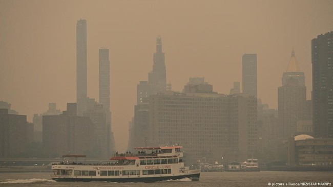 Asap dari kebakaran hutan di Kanada itu menyebar ratusan kilometer jauhnya, hingga ke Kota New York dan New England, Amerika Serikat (AS). "Big Apple", julukan bagi kota New York itu misalnya, telah diselimuti kabut asap.